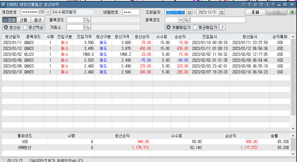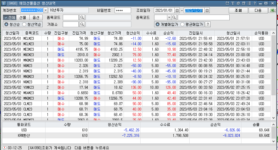 2023년 다시 거래량 늘려 전업? 정도의 거래 음 거래량이 적을 때가 훨씬 수익이 좋은 것 같다 하지만 올해 나는 많은 데이터를 모았고 전체적으로 1천만 원 이상 수익이 아직 유지되고 있다.